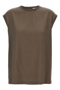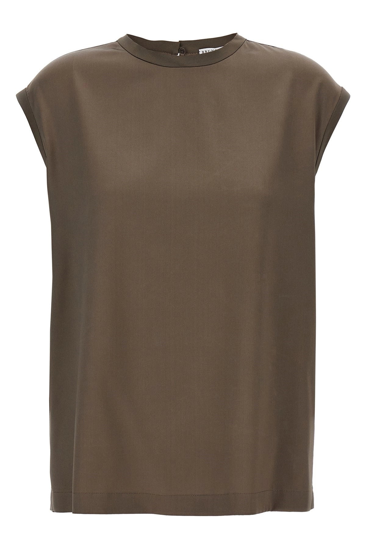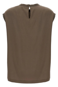 Sleeveless T-shirt in stretch silk satin with Monile detail on the back, with slightly dropped shoulders, button closure with cut-out detail at the back. Color: Brown Size & Fit: Comfort fit Composition: 96% silk, 4% elastane Made in: Italy SKU: MPC59EH500C3981 Our Products Are 100% Genuine. In All Cases We Stand By The Authenticity Of Every Product Sold On Our Site. All sales are final and we only accept returns for quality issue. Buyer is responsible for any import tax/duty if applicable.