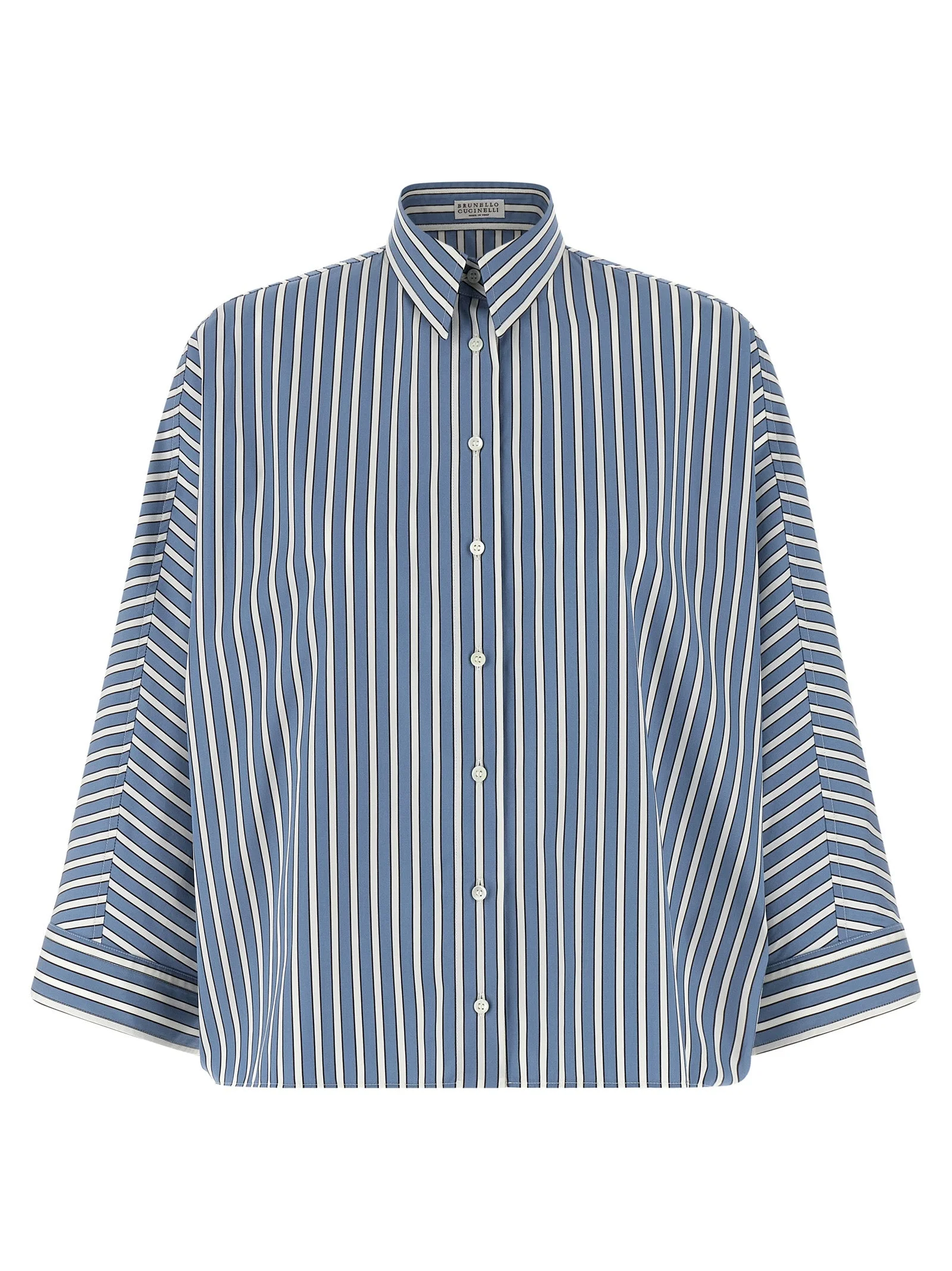 Striped cotton poplin shirt, slightly cropped model, pointed collar with Monile detail on the back, front button closure, 3/4 bat sleeves with cuffs. oversized fit 100% cotton SKU: MH749MX716C001 Our Products Are 100% Genuine. In All Cases We Stand By The Authenticity Of Every Product Sold On Our Site. All sales are final and we only accept returns for quality issue. Buyer is responsible for any import tax/duty if applicable.
