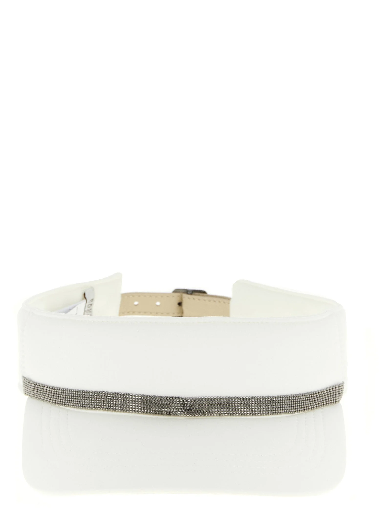 Visor in technical fabric, Monile detail on the front, adjustable leather strap on the back. true to size fit 93% polyester 7% polyurethane SKU: MCAP9T001C007 Our Products Are 100% Genuine. In All Cases We Stand By The Authenticity Of Every Product Sold On Our Site. All sales are final and we only accept returns for quality issue. Buyer is responsible for any import tax/duty if applicable.