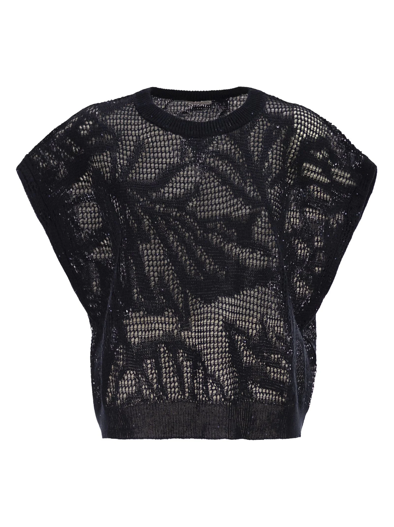 This top interprets Brunello Cucinelli's contemporary elegance through light and refined craftsmanship. Made from openwork linen and cotton knit, the garment stands out for its airy texture and sheer effect that naturally enhances the silhouette. The delicately applied sequins create luminous reflections that enrich the design without compromising its simplicity. The essential cut and fluid construction make this model ideal for sophisticated layering or refined summer looks. - Crew neck - Sleeveless model - Openwork construction - Decorative sequin applique - Loose fit DESIGNER ID: MDT771010 C4224 94% Linen, 6% Cotton Applications: 100% Polyester Size Type: INT SKU: MDT771010C4224 Our Products Are 100% Genuine. In All Cases We Stand By The Authenticity Of Every Product Sold On Our Site. All sales are final and we only accept returns for quality issue. Buyer is responsible for any import tax/duty if applicable.