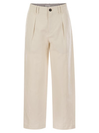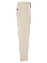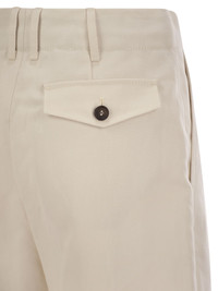 Cotton and linen canvas pleated chino trousers