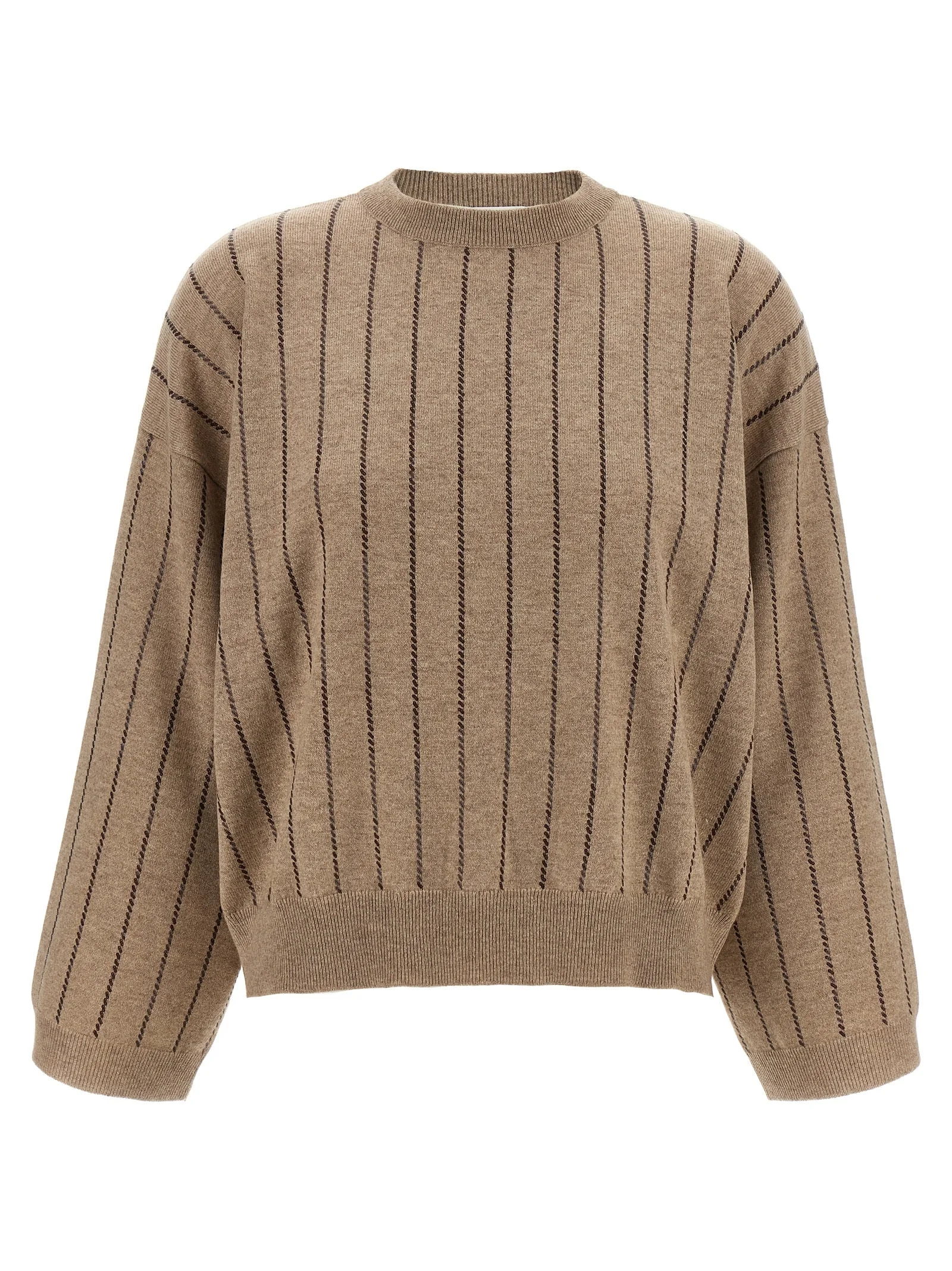 Cashmere sweater with striped sequin detail, crew neck, wide long cuffed sleeves and dropped shoulder. oversized fit 100% cashmere SKU: M12215100PC077 Our Products Are 100% Genuine. In All Cases We Stand By The Authenticity Of Every Product Sold On Our Site. All sales are final and we only accept returns for quality issue. Buyer is responsible for any import tax/duty if applicable.