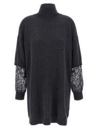 Knitted cashmere mini dress, double layer long sleeves with tulle insert with sequin and cuff applique, high neck. Comfort fit 100% cashmere SKU: M12730A94C2803 Our Products Are 100% Genuine. In All Cases We Stand By The Authenticity Of Every Product Sold On Our Site. All sales are final and we only accept returns for quality issue. Buyer is responsible for any import tax/duty if applicable.