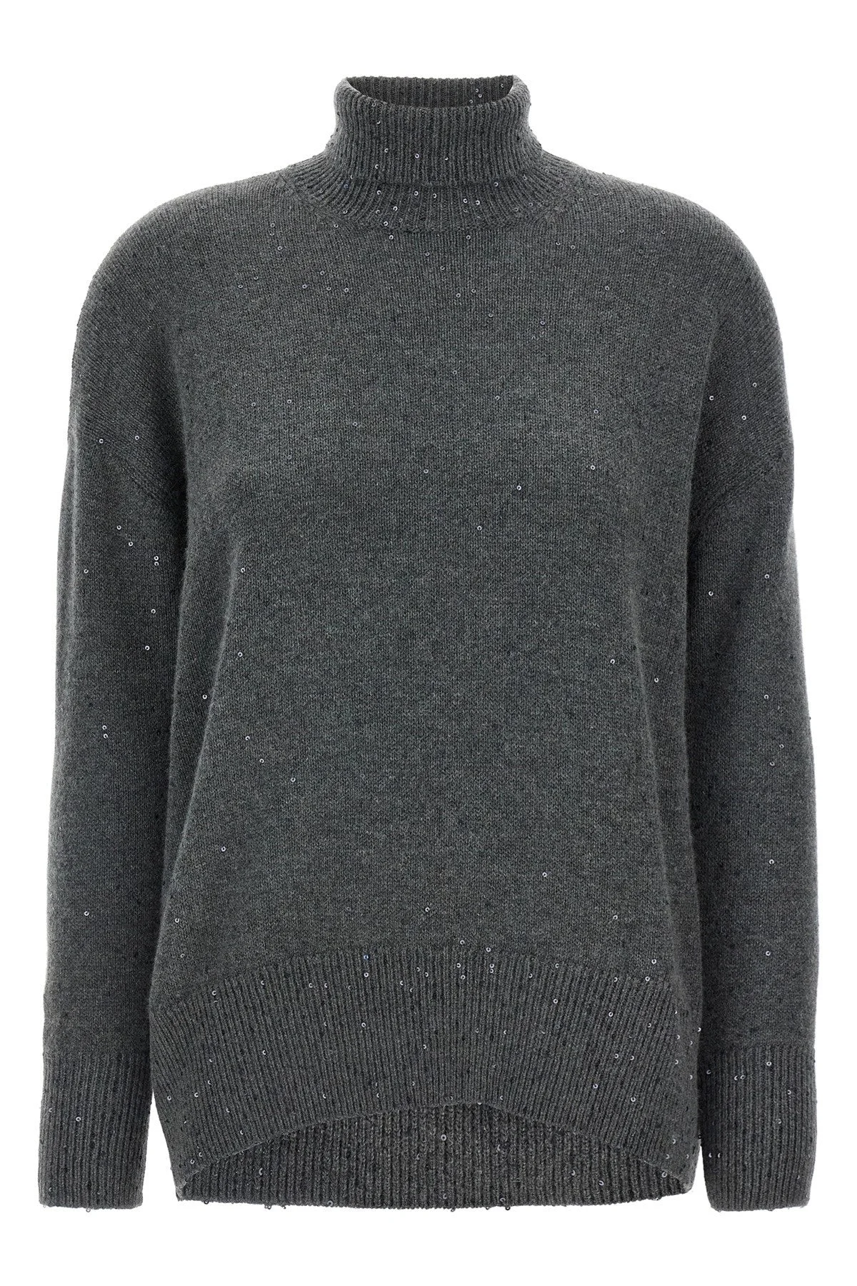 Cashmere blend sweater with high neck, all-over microsequin embroidery detail, long cuffed sleeves. Color: Gray Size & Fit: True to size fit Composition: 80% cashmere 20% silk Made in: Italy SKU: M73539914CJ079 Our Products Are 100% Genuine. In All Cases We Stand By The Authenticity Of Every Product Sold On Our Site. All sales are final and we only accept returns for quality issue. Buyer is responsible for any import tax/duty if applicable.