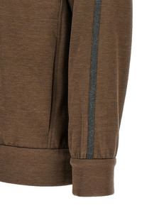 Cotton and silk interlock hoodie with Monile 'Shiny Trims' detail on sleeves and hood, front zip closure, pockets, long cuffed sleeves. Color: Brown Size & Fit: true to size fit Composition: 67% cotton 31% silk 2% polyamide Made in: Italy SKU: MP828SM606C9122 Our Products Are 100% Genuine. In All Cases We Stand By The Authenticity Of Every Product Sold On Our Site. All sales are final and we only accept returns for quality issue. Buyer is responsible for any import tax/duty if applicable.