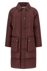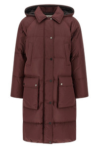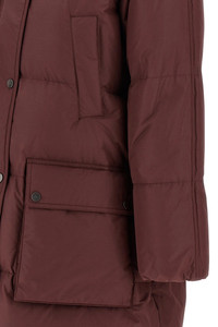 Long down jacket in quilted technical fabric padded with water-repellent goose down, removable hood, shirt collar, zip closure with 'Shiny Zipper Pull' monile zipper puller and front snap buttons, pockets, long sleeves with elastic cuffs, drawstring on the hem. Color: Bordeaux Size & Fit: true to size fit Composition: 55% polyester, 45% cotton Made in: Italy SKU: MG5019946CFS36 Our Products Are 100% Genuine. In All Cases We Stand By The Authenticity Of Every Product Sold On Our Site. All sales are final and we only accept returns for quality issue. Buyer is responsible for any import tax/duty if applicable.