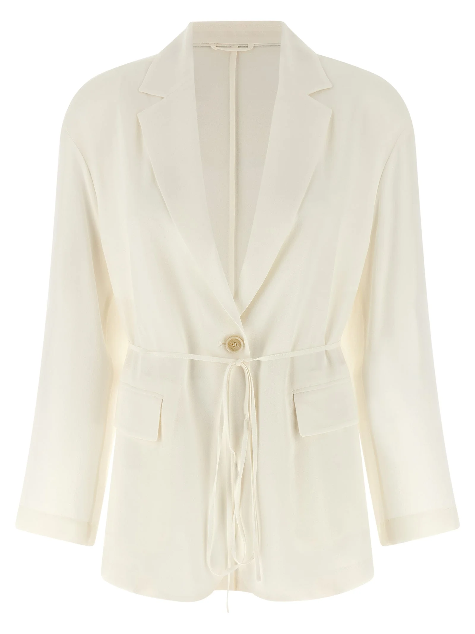 Silk crepe blazer jacket, unlined, rounded lapels, single-breasted 1 button closure, knotted lace at the waist, central back split, long sleeves. True to size fit 100% silk SKU: MF9067590C600 Our Products Are 100% Genuine. In All Cases We Stand By The Authenticity Of Every Product Sold On Our Site. All sales are final and we only accept returns for quality issue. Buyer is responsible for any import tax/duty if applicable.