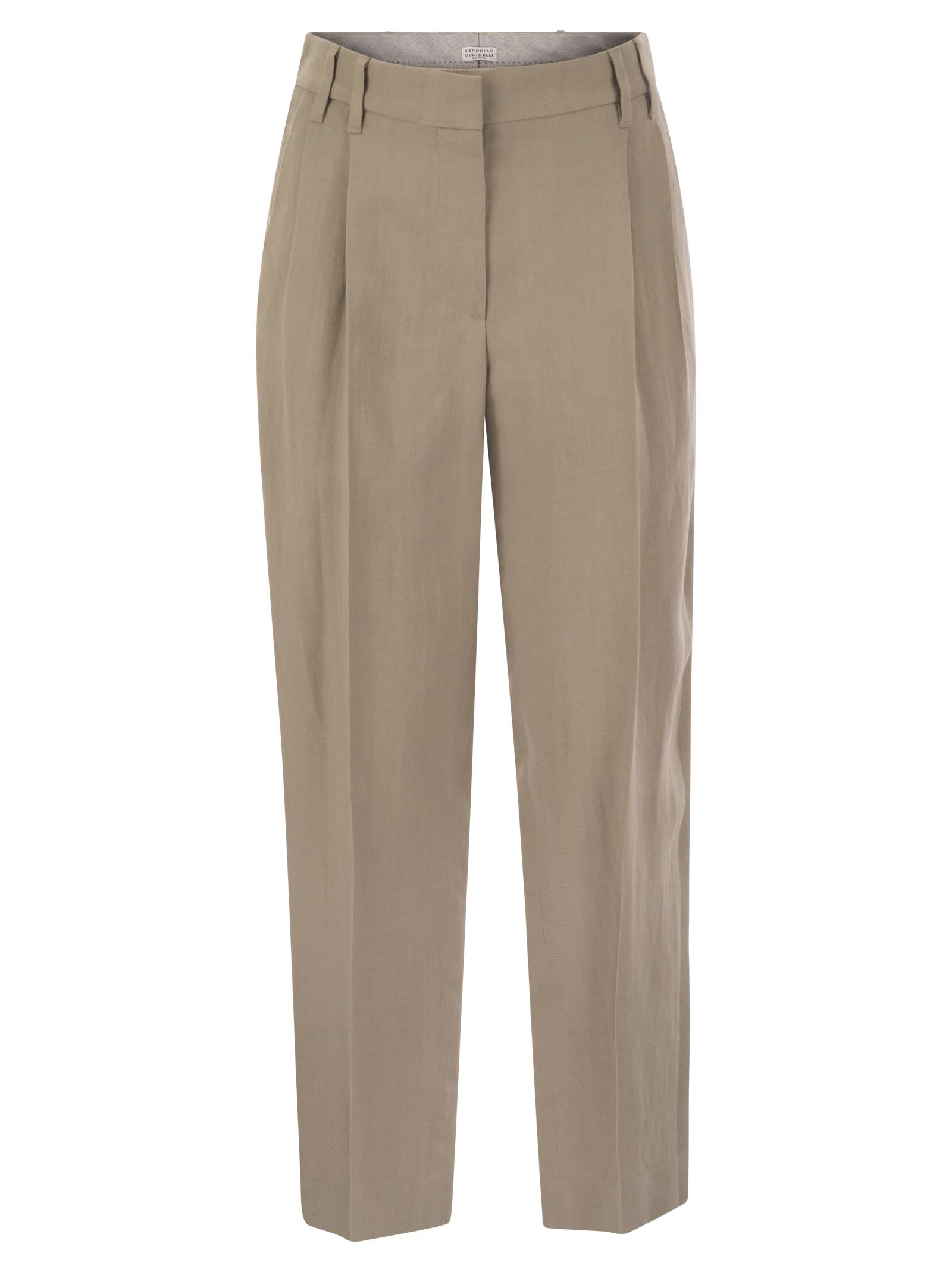 Viscose and linen fluid twill slouchy trousers with monili