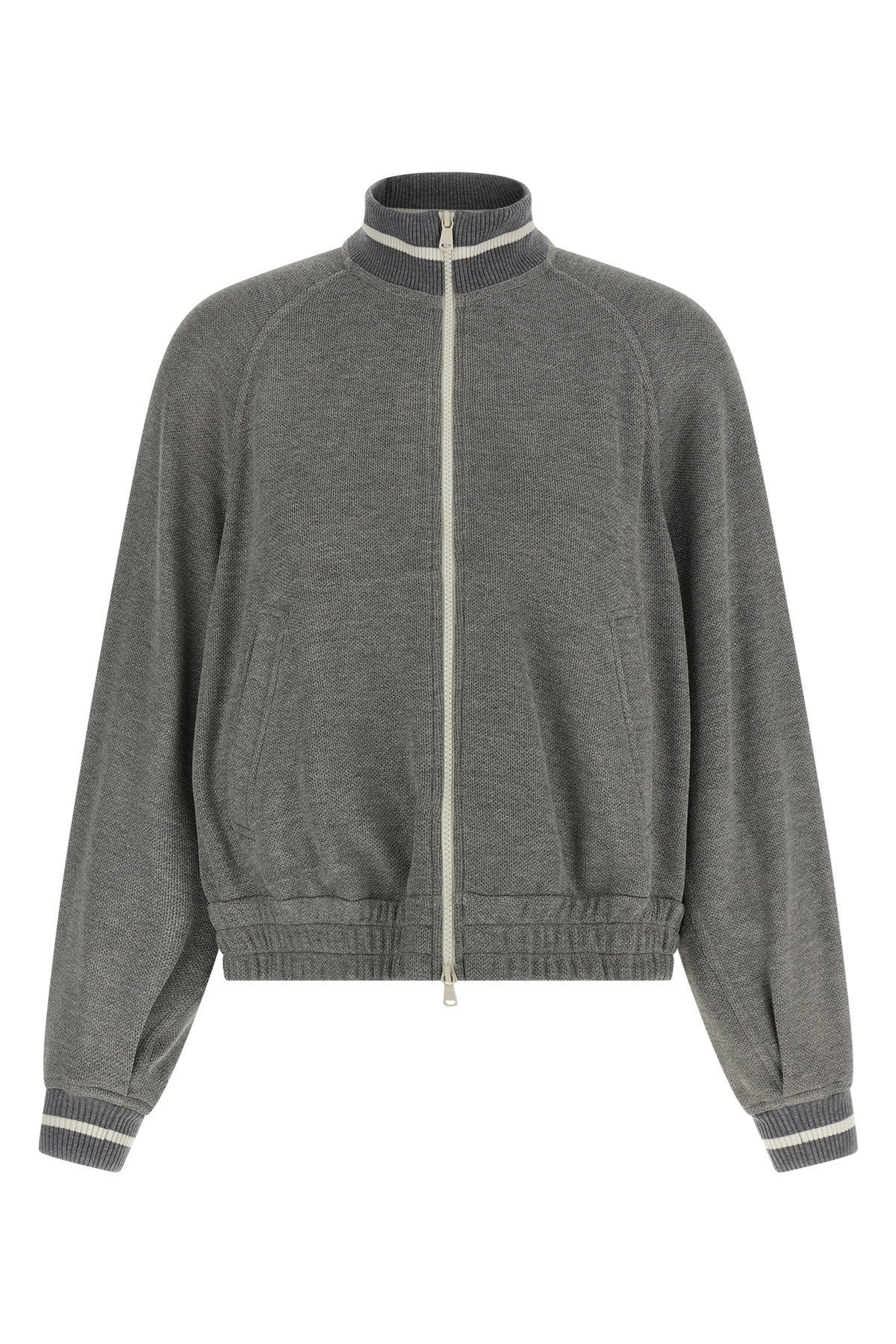 Cotton and viscose 'Sparkling' pique sweatshirt with lame thread and stretch ribbed knit details, cropped bomber jacket styles, high neck, front zip closure, pockets, long sleeves with cuffs and dropped shoulders. Color: Silver Size & Fit: Comfort fit Composition: 62% viscose 33% cotton 5% polyester Made in: Italy SKU: MP930SN806C4527 Our Products Are 100% Genuine. In All Cases We Stand By The Authenticity Of Every Product Sold On Our Site. All sales are final and we only accept returns for quality issue. Buyer is responsible for any import tax/duty if applicable.