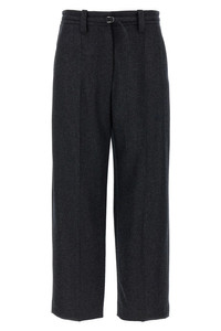 Virgin wool flannel straight cropped trousers with monili