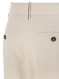 Inspirations from the equestrian world and fine materials come together in the new Equestrian trousers. The double dart on the upper part gives volume and structure to the model, which tightens along the leg, enveloping and slimming the silhouette. The bright jewel embroidery adds a refined touch of light, in pure Brunello Cucinelli style. The stretch viscose-wool twill is a fabric characterised by a slightly raised diagonal weave. The combination of viscose and wool gives a light and very fluid look, while the low percentage of synthetic fibre perfects wearing comfort. - Zip fastening with metal hooks and counter-button - Front ‘American’ pockets - Back welt pockets with button - Double dart - Unlined - Nickel-free jewel decoration DESIGNER ID: MP512P9029 C145 89% Viscose, 8% Wool, 3% Elastane Lining: 65% Acetate, 35% Polyester Application Eco finish brass Size Type: IT SKU: MP512P9029C145 Our Products Are 100% Genuine. In All Cases We Stand By The Authenticity Of Every Product Sold On Our Site. All sales are final and we only accept returns for quality issue. Buyer is responsible for any import tax/duty if applicable.