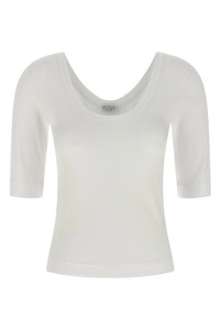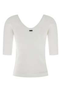 Stretch cotton ribbed jersey T-shirt with wide round neckline on the front and back, back Monile detail, and short sleeves. Color: White Size & Fit: true to size fit Composition: 94% cotton 6% elastane Made in: Italy SKU: MPTC8FX220C159 Our Products Are 100% Genuine. In All Cases We Stand By The Authenticity Of Every Product Sold On Our Site. All sales are final and we only accept returns for quality issue. Buyer is responsible for any import tax/duty if applicable.