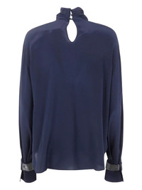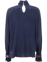 Bead-embellished silk crepe de chine turtleneck blouse Navy