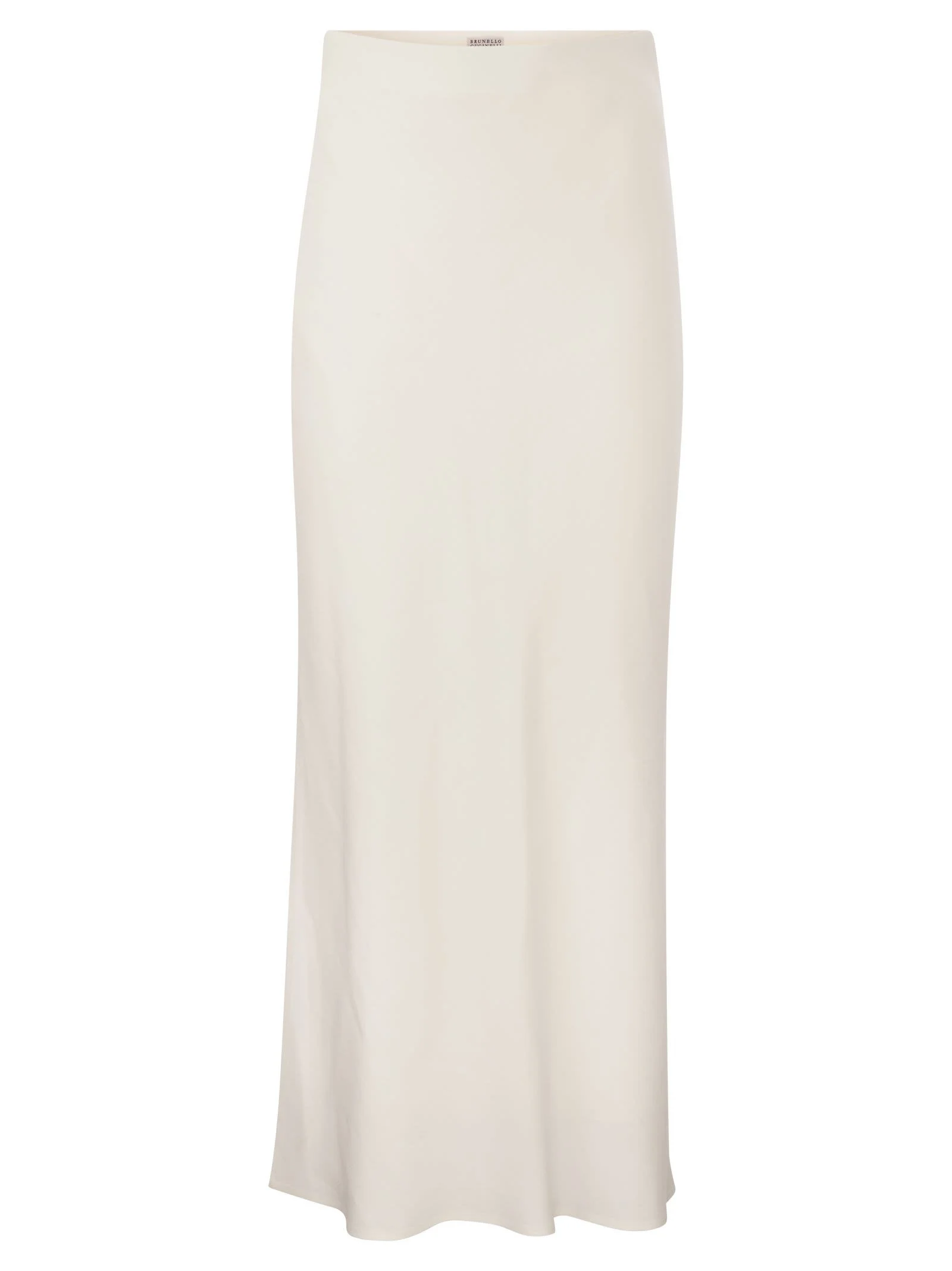 The precious materials of the Brunello Cucinelli collections enrich the elongated silhouette of the skirt and reinterpret the sheath model in a contemporary key. The lightness and freshness of the viscose and linen favour the soft, flowing volumes, creating a slight movement along the length, while the luminous effect of the fabric emphasises the quality of the material and gives the skirt a purely feminine allure. - Lined - Bottom with slits DESIGNER ID: MH126G3396 C600 73% Viscose, 27% Linen Lining: 74% Acetate, 26% Silk Application: 80% Polyester, 20% Elastan Size Type: IT SKU: AB021408 Our Products Are 100% Genuine. In All Cases We Stand By The Authenticity Of Every Product Sold On Our Site. All sales are final and we only accept returns for quality issue. Buyer is responsible for any import tax/duty if applicable.