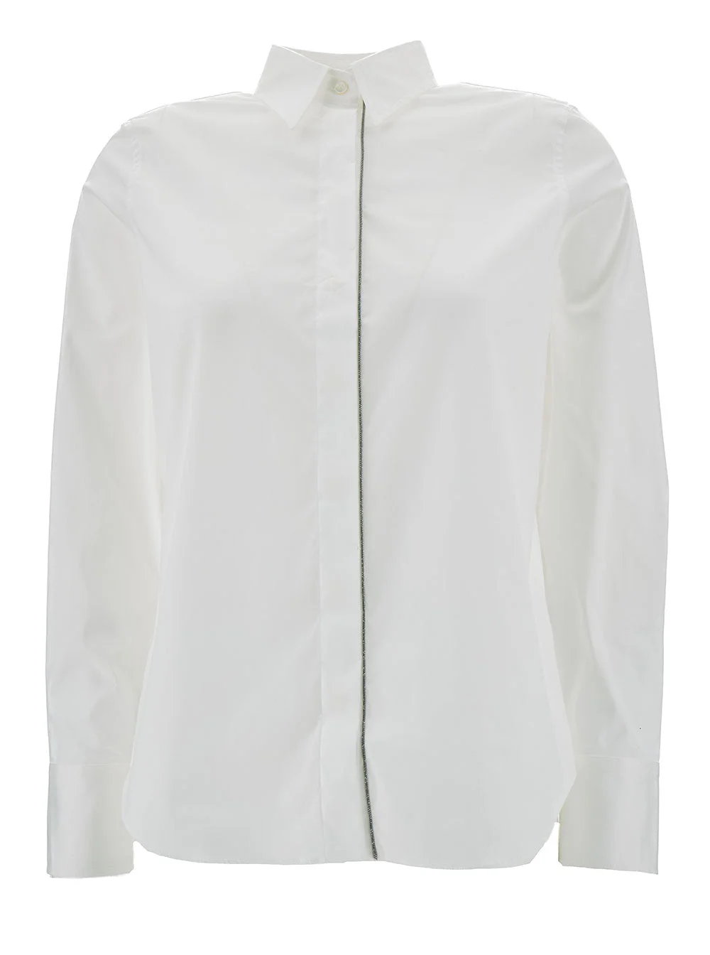 Brunello Cucinelli Women White Shirt With Monile Detail In Cotton Blend Woman