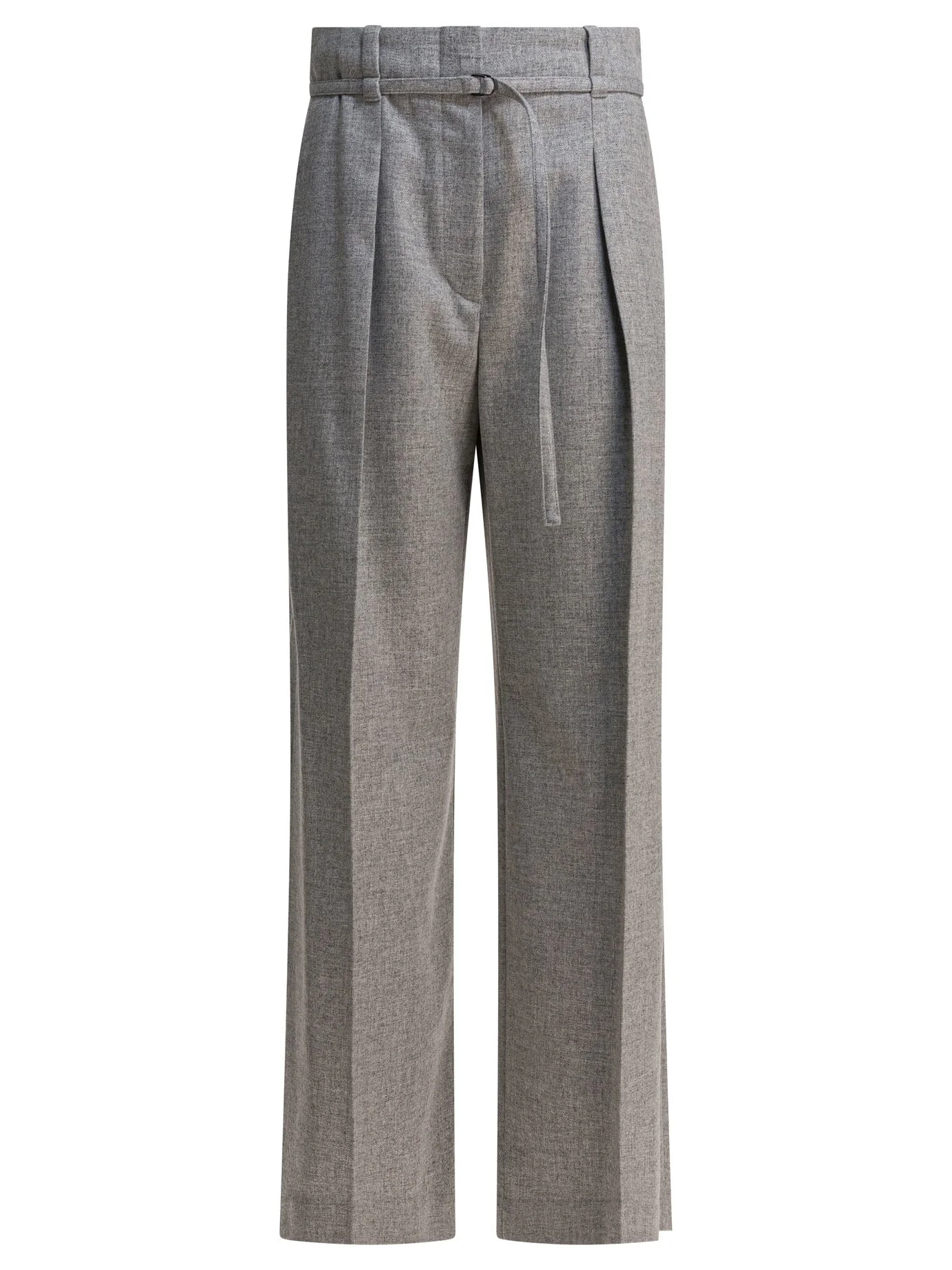 Brunello Cucinelli wide-leg pants featuring wide structure with double front and back darts, ironed crease along the entire leg and straight line. Wool and cashmere main fabric. Zipper and hook-and-eye closure, waist loops and matching fabric belt with 1 cm buckle. Two side welt pockets and two back welt pockets complete the functional construction. || - Solid color - Zipper and hook-and-eye closure - Belt loops - Fabric belt with 1 cm buckle included - Two side welt pockets - Double front and back darts - Pleat present throughout the length of the leg - Two back welt pockets - Composition: 95% wool, 5% cashmere - Wide fit 95% wool 5% cashmere SKU: MB162P9050C030 Our Products Are 100% Genuine. In All Cases We Stand By The Authenticity Of Every Product Sold On Our Site. All sales are final and we only accept returns for quality issue. Buyer is responsible for any import tax/duty if applicable.