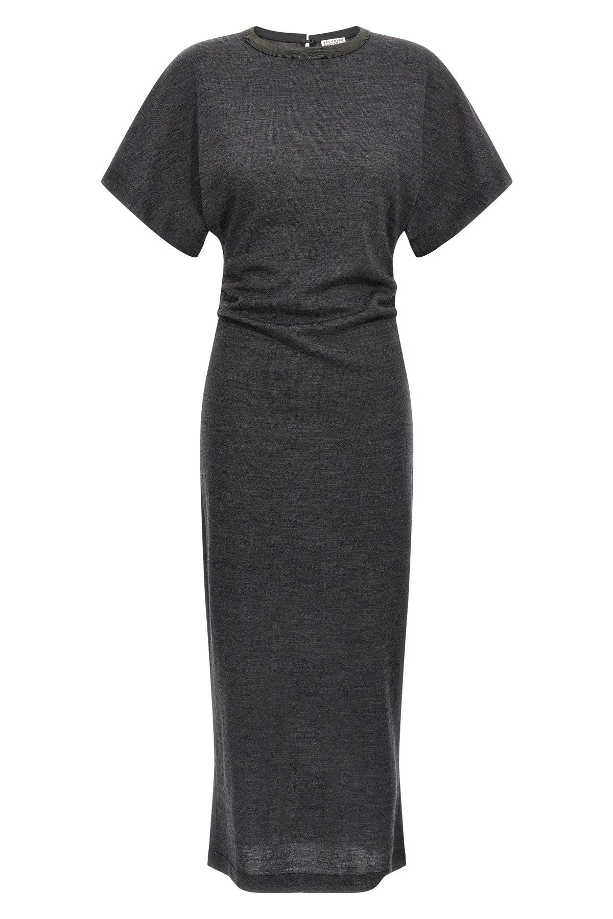 Wool knit midi dress with crew neck with 'Monile' detail, back button closure, curled on the side, short and wide sleeves. Color: Gray Size & Fit: True to size fit Composition: 100% virgin wool Made in: Italy SKU: MHR892A90C079 Our Products Are 100% Genuine. In All Cases We Stand By The Authenticity Of Every Product Sold On Our Site. All sales are final and we only accept returns for quality issue. Buyer is responsible for any import tax/duty if applicable.