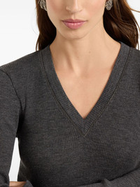 Ribbed wool jersey top with shiny trim