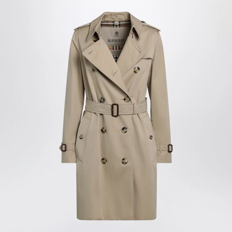 Burberry Beige Double-Breasted Kensington Cotton Trench Coat Women