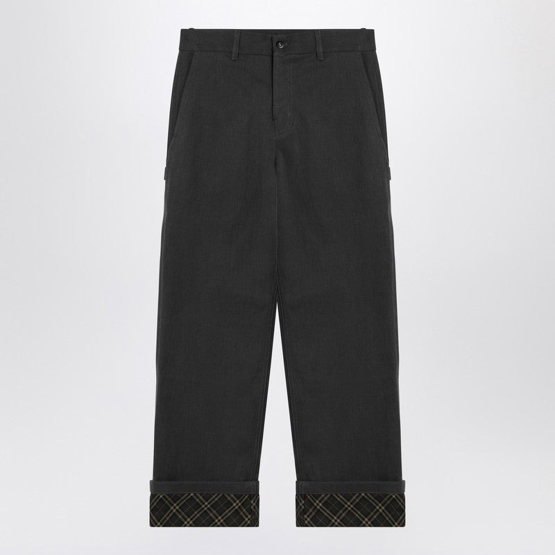 Black cotton Burberry trousers, featuring front zip and button fastening, waist loops, two side welt pockets, two cargo pockets, one of which has tone-on-tone logo embroidery, two patch pockets on the back, and turn-ups at the bottom of the leg with Check pattern. Model wears size 50 IT Model measurements: Height: 185 cm Chest: 100 cm Waist: 83 cm Hips: 92 cm Size Type: IT Material: Cotton SKU: 8097557162892/PBURBEA1189202 Our Products Are 100% Genuine. In All Cases We Stand By The Authenticity Of Every Product Sold On Our Site. All sales are final and we only accept returns for quality issue. Buyer is responsible for any import tax/duty if applicable.
