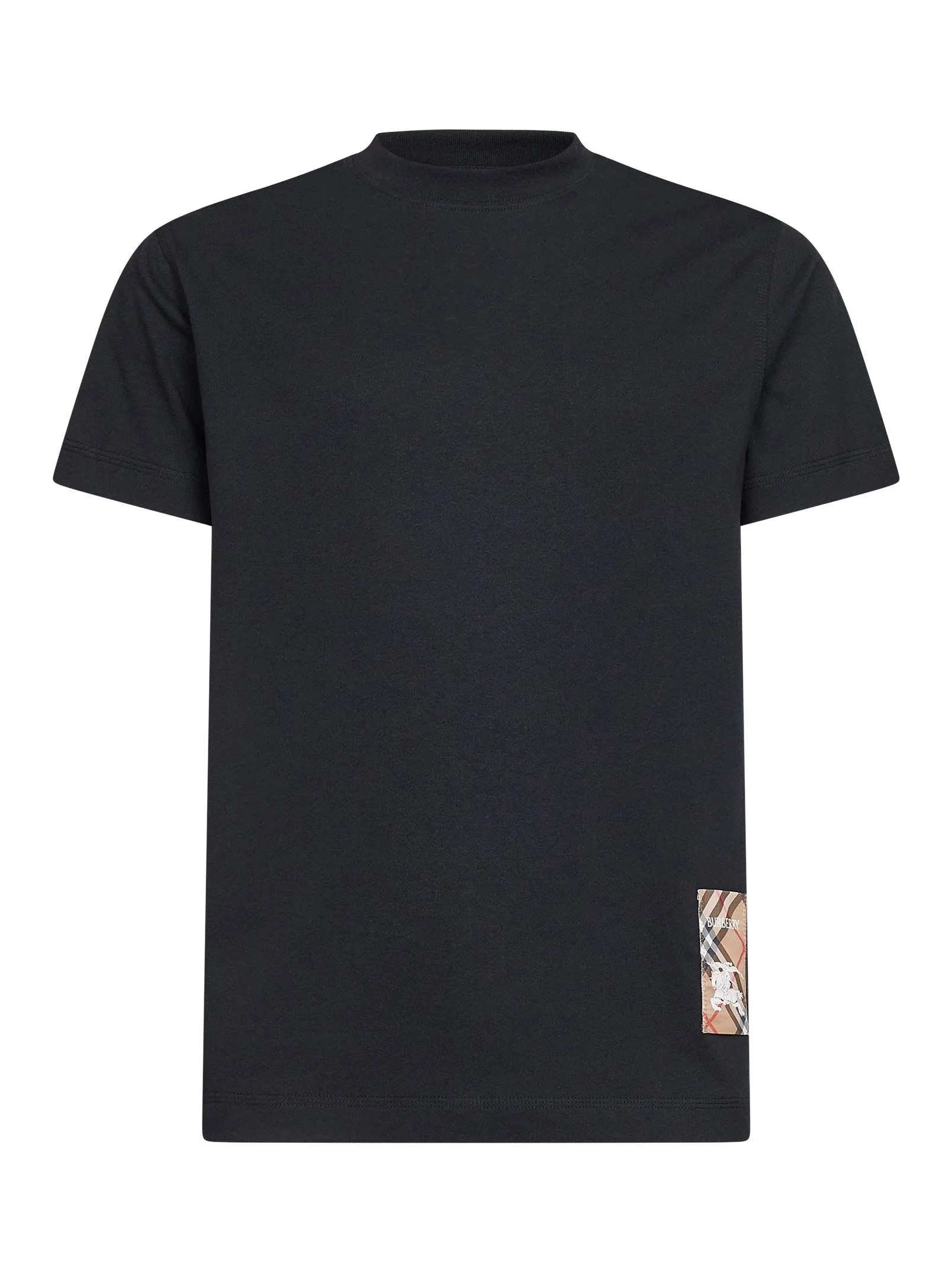 •Ribbed crewneck •Short sleeves •Burberry Check patch at bottom front with embroidered logo and Equestrian Knight Design •Straight hem •Slim fit •Black color •100% Cotton •Made in Portugal SKU: 8104889-a1189 Our Products Are 100% Genuine. In All Cases We Stand By The Authenticity Of Every Product Sold On Our Site. All sales are final and we only accept returns for quality issue. Buyer is responsible for any import tax/duty if applicable.
