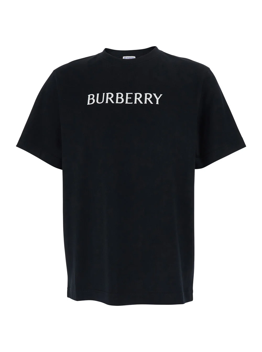Burberry Men Black Crewneck T-Shirt With Logo Lettering On The Front In Cotton Man