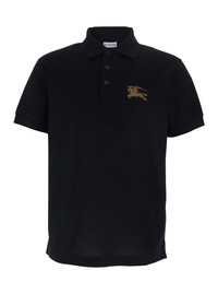 Burberry Men Black Polo Shirt With Classic Collar And Ekd Embroidery In Cotton Man
