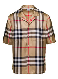 Burberry Men Brown Bowling Shirt With All-Over Checkered Print In Silk Man