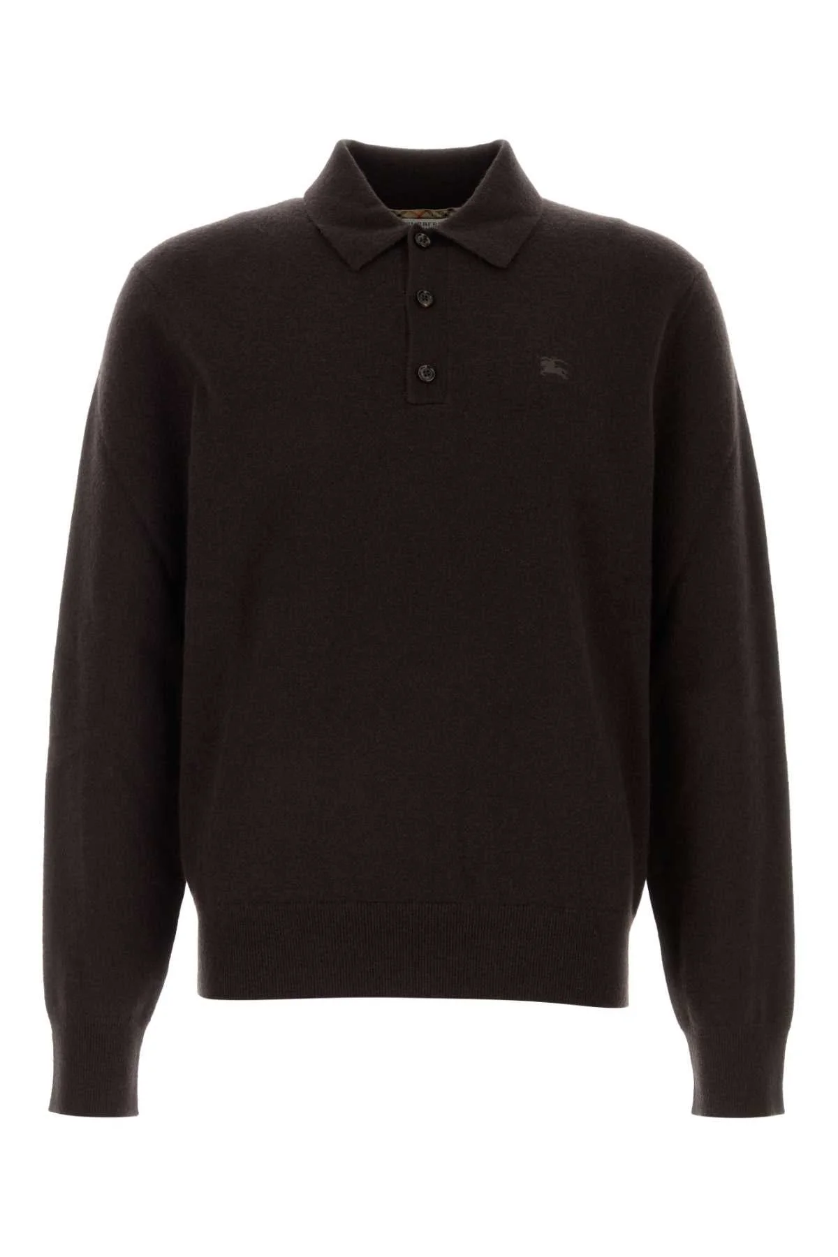 Burberry Men Dark Brown Stretch Cashmere Blend Polo Shirt