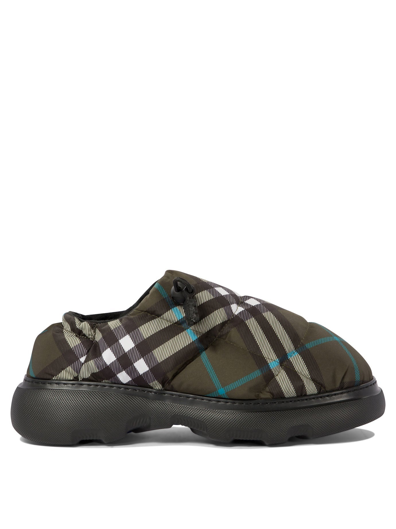Burberry's "Pillow" Slippers are the epitome of comfort and contemporary elegance. These quilted mules made from a nylon blend feature the distinctive Burberry Check printed pattern, bringing a touch of iconic style. Perfect for the man who doesn't want to give up luxury even in moments of relaxation, these slippers combine practicality with exclusive design. || - Drawstring closure - Round toe - Burberry lettering on the sole - Labels with Equestrian Knight Design - Thick contoured rubber sole || We recommend pairing them with a cashmere coat for a refined look, or with jeans and a wool sweater for a more casual and elegant interpretation. With Burberry's "Pillow" Slippers, every step will be an experience of style and comfort. 67% polyamide 33% polyester - 100% rubber SKU: 8092648 Our Products Are 100% Genuine. In All Cases We Stand By The Authenticity Of Every Product Sold On Our Site. All sales are final and we only accept returns for quality issue. Buyer is responsible for any import tax/duty if applicable.