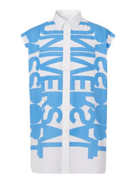 Sleeveless Slogan Print Cotton Poplin Shirt