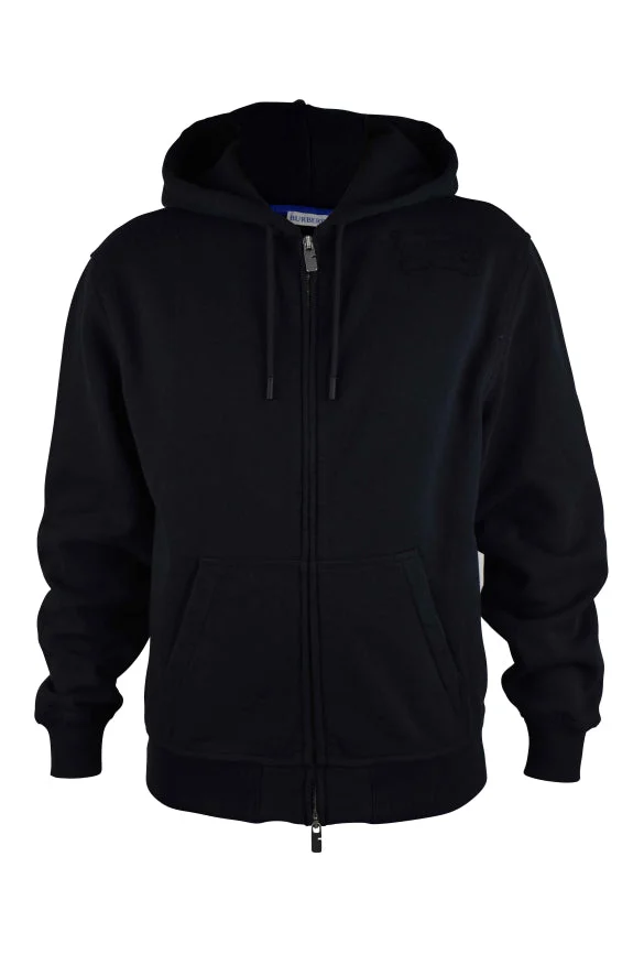 Black cotton hooded vest Burberry. Tone-on-tone embroidered logo patch on chest. Zip fastening. Drawstring hood. Side pockets. Ribbed edges. Size Type: INT SKU: 81007531001 Our Products Are 100% Genuine. In All Cases We Stand By The Authenticity Of Every Product Sold On Our Site. All sales are final and we only accept returns for quality issue. Buyer is responsible for any import tax/duty if applicable.