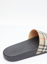 Vintage check print slides. Open toe Vintage check motif Debossed logo at footbed Made in Italy 100% Polyurethane 8056942 A7028 SKU: 8056942A7028 Our Products Are 100% Genuine. In All Cases We Stand By The Authenticity Of Every Product Sold On Our Site. All sales are final and we only accept returns for quality issue. Buyer is responsible for any import tax/duty if applicable.