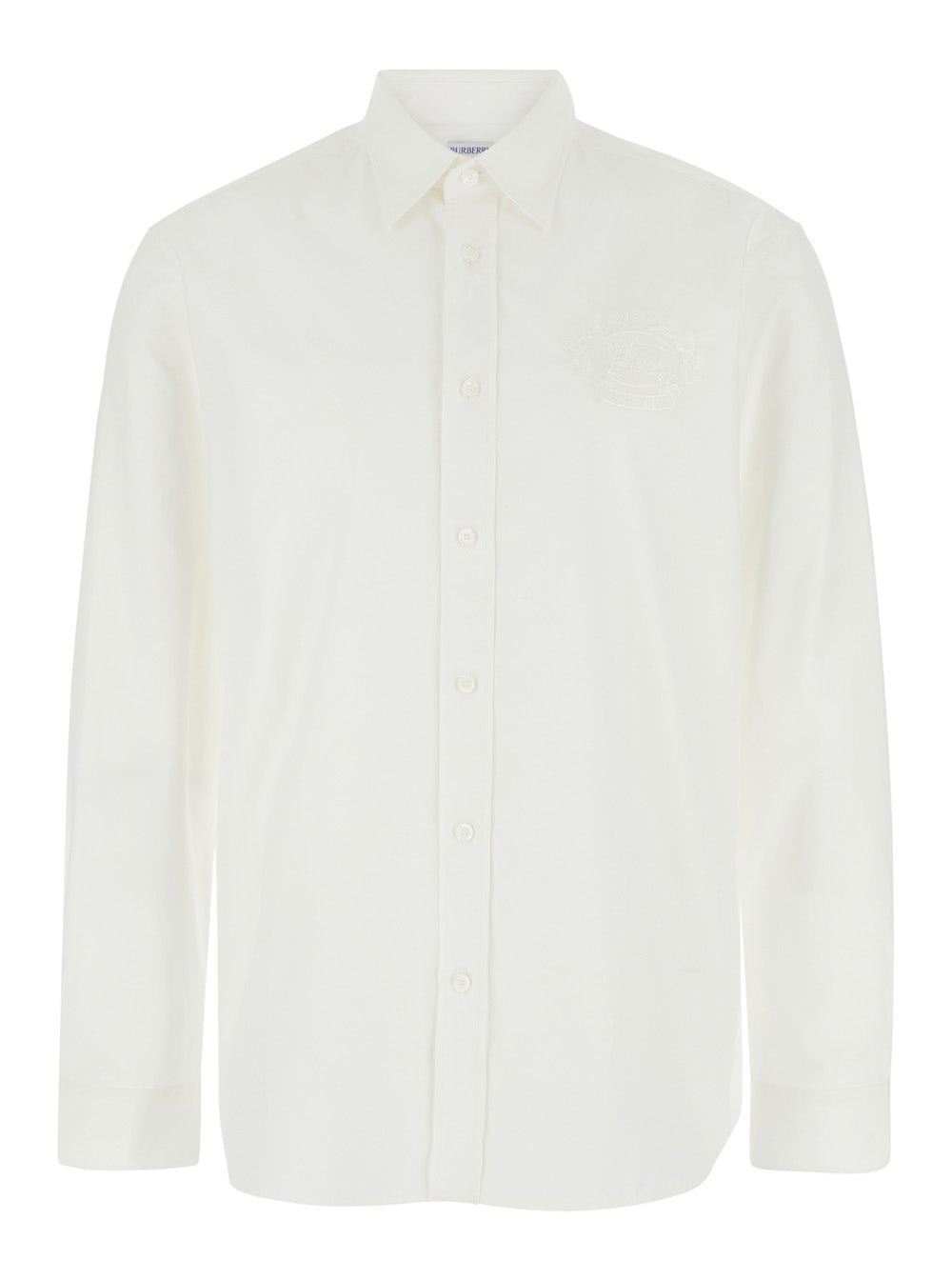 Burberry Men White Shirt With Classic Collar And Embroidered Logo On The Front In Cotton Man