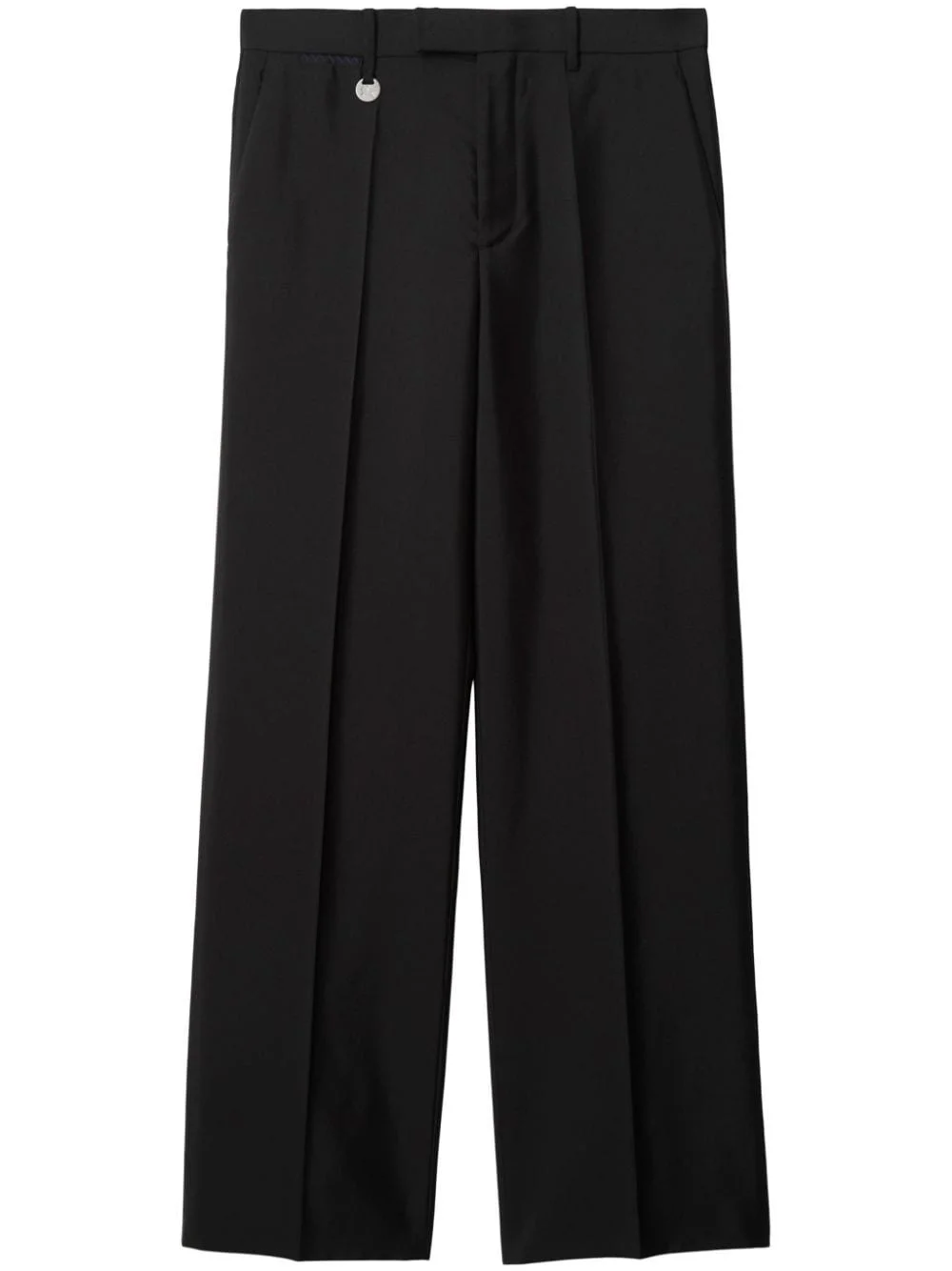 black wool-silk blend logo charm mid-rise belt loops concealed front fastening side pouch pockets two rear welt pockets pressed crease straight leg Size Type: IT SKU: 8088592A1189 Our Products Are 100% Genuine. In All Cases We Stand By The Authenticity Of Every Product Sold On Our Site. All sales are final and we only accept returns for quality issue. Buyer is responsible for any import tax/duty if applicable.