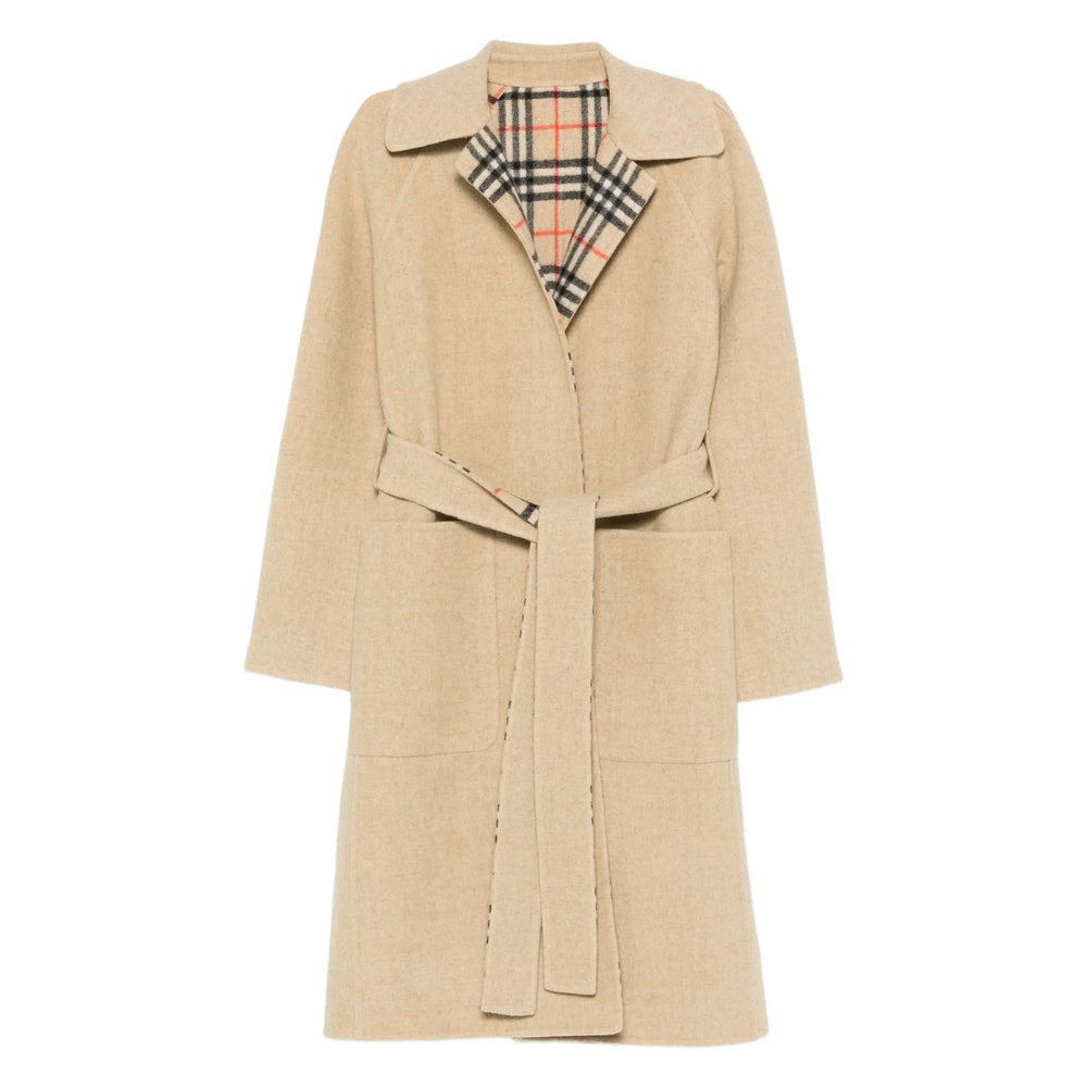 beige belted waist signature check-patterned lining patch pockets notched collar long sleeves MADE IN:ItalyMATERIAL:Lining Composition Viscose: 100.0%, Outer Composition Wool: 100.0%COLOR:NEUTRALS SKU: 8110900TUNBRIDGEB9368 Our Products Are 100% Genuine. In All Cases We Stand By The Authenticity Of Every Product Sold On Our Site. All sales are final and we only accept returns for quality issue. Buyer is responsible for any import tax/duty if applicable.