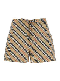 Burberry Women Beige Shorts With Elastic Drawstring Waist And All-Over Check Motif In Cotton Woman