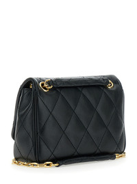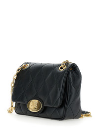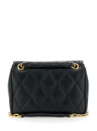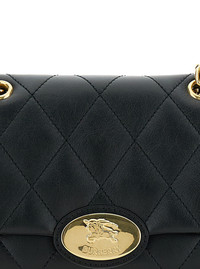 Burberry Women Black Quilted Crossbody Bag With Ekd Plaque On The Front And Chain-Link Shoulder Stra