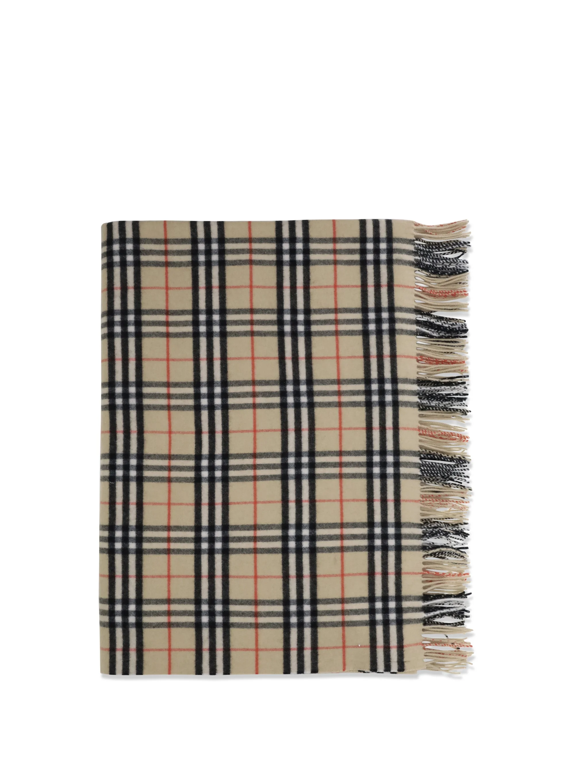 The cashmere Blanket by Burberry crafted in Scotland and woven with the iconic Check pattern in classic sand beige. The cashmere is processed in a historic Scottish mill, washed in local spring water, and brushed to achieve an exceptionally soft finish. Its rectangular design is completed with fringed ends, offering timeless elegance and enveloping comfort. Size Type: One Size SKU: 8119480B9368 Our Products Are 100% Genuine. In All Cases We Stand By The Authenticity Of Every Product Sold On Our Site. All sales are final and we only accept returns for quality issue. Buyer is responsible for any import tax/duty if applicable.