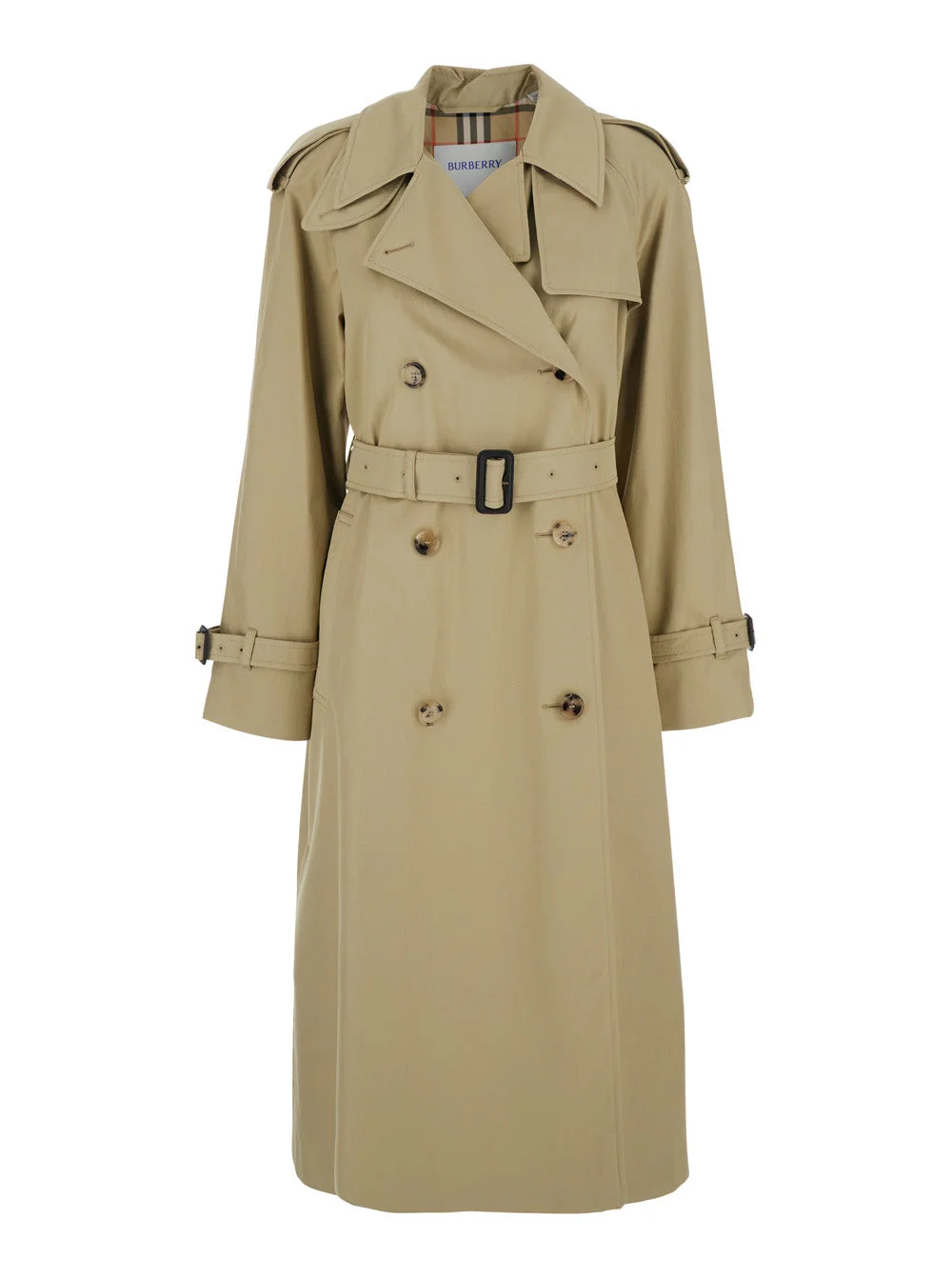 Burberry Women 'Castleford' Beige Double-Breasted Trench Coat With Waist Belt In Cotton Blend Woman