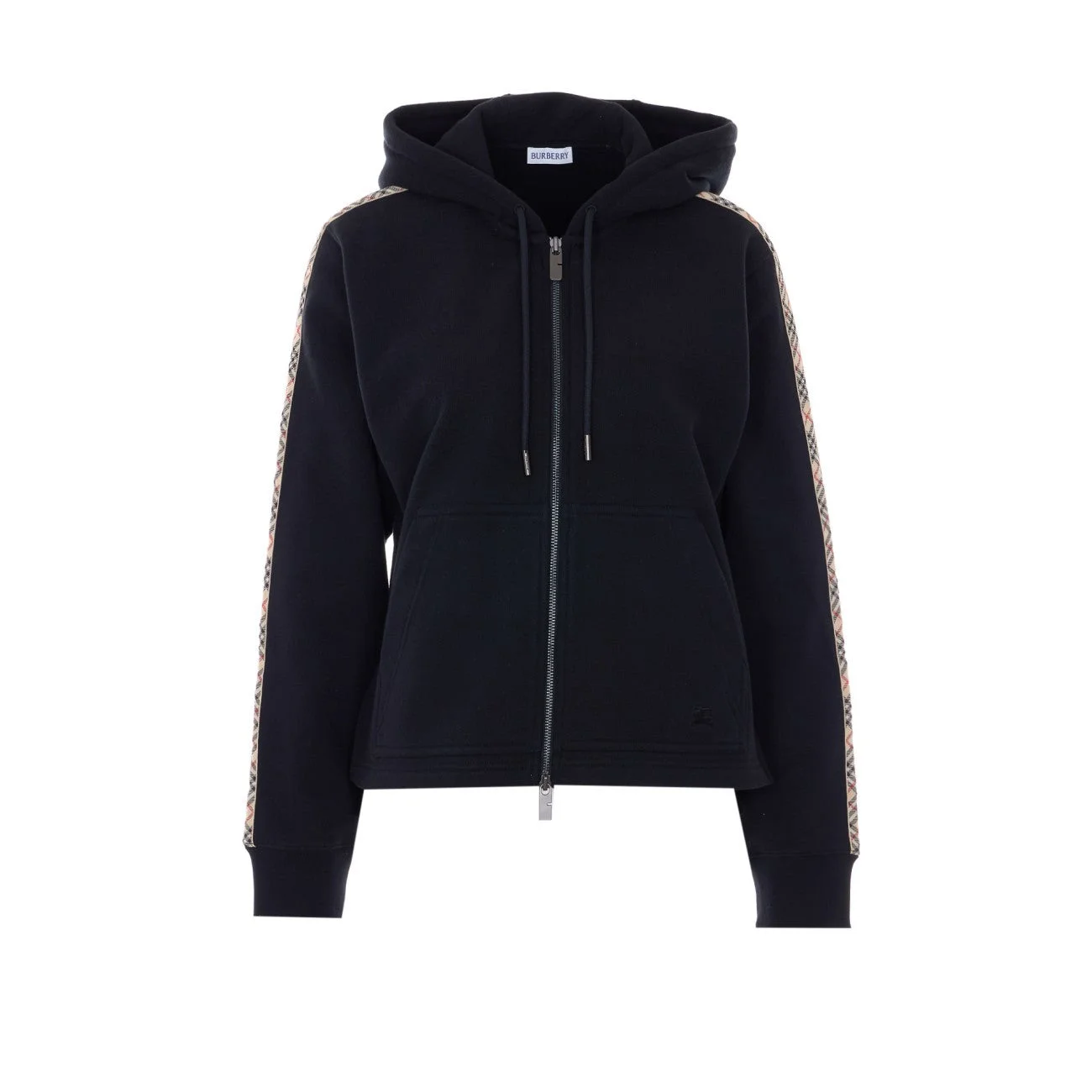 Burberry Women Check Cotton Hoodie, Zipper And Trim