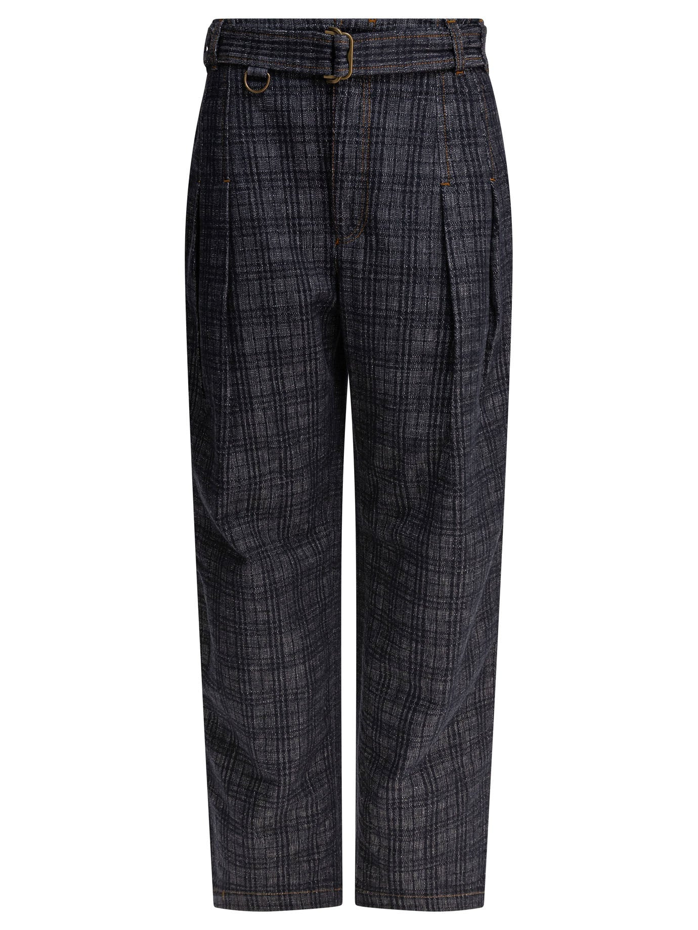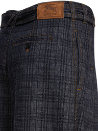 Burberry's denim jeans combine timeless design with contemporary details, representing a modern interpretation of classic denim. Carefully crafted in Italy, these jeans feature the iconic Check pattern in a jacquard fabrication, enhanced by a five-pocket design that combines functionality and aesthetics. The model is distinguished by its loose fit, making it ideal for those seeking comfort without sacrificing the distinctive style of the British brand. || - Check - High waist - Belt with B-shaped buckle - Hook, button and zipper closure - Side pouch pockets - Buttoned welt pocket on the back - Suede label with Equestrian Knight Design on the back - Indigo wash - Eco-friendly products - Wide fit 100%cotton SKU: 8110727 Our Products Are 100% Genuine. In All Cases We Stand By The Authenticity Of Every Product Sold On Our Site. All sales are final and we only accept returns for quality issue. Buyer is responsible for any import tax/duty if applicable.