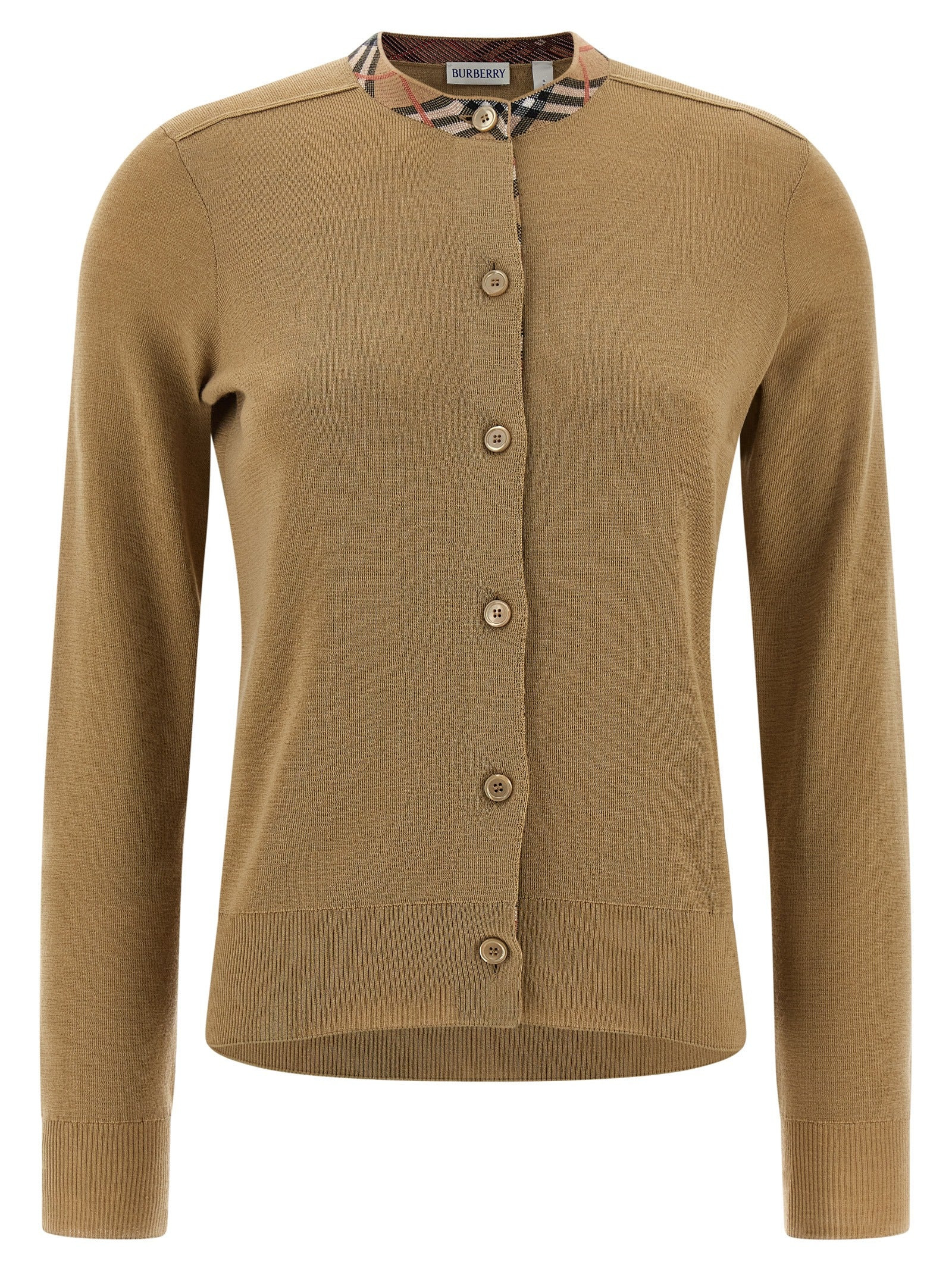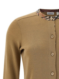 Wool knit cardigan with crew neck with check insert, front button closure, long sleeves with cuffs. True to size fit 100% wool SKU: 8112164FLAX Our Products Are 100% Genuine. In All Cases We Stand By The Authenticity Of Every Product Sold On Our Site. All sales are final and we only accept returns for quality issue. Buyer is responsible for any import tax/duty if applicable.