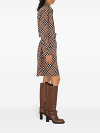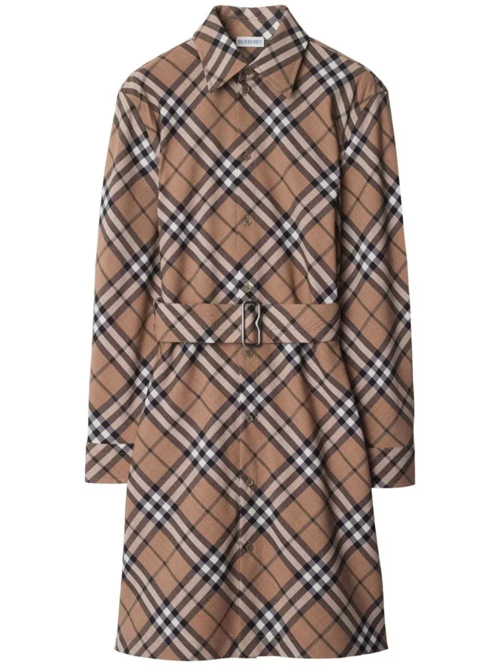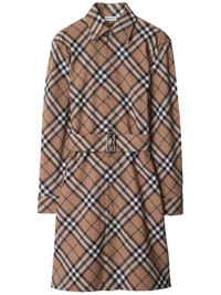 light brown/black/white nova check pattern cut-out detailing spread collar front button placket long sleeves buttoned cuffs belted waist straight hem above-knee length cotton lining We've partnered with Good On You — an independent agency that rates how brands perform in relation to their impact on the planet, people and animals, with a multi-criteria rating simplified to a five points scale. In order to be awarded our conscious label, larger brands need to score a minimum of four out of five ('Good'), while smaller brands must score at least three out of five ('It's A Start'). This item comes from a brand rated three out of five ('It's A Start') by Good on You at the time it was added on FARFETCH. Please note, this is a brand-level rating and does not guarantee that this product is made with conscious materials. Learn more about what makes a product Conscious on our Conscious Criteria page Size Type: UK SKU: 8095080C1202 Our Products Are 100% Genuine. In All Cases We Stand By The Authenticity Of Every Product Sold On Our Site. All sales are final and we only accept returns for quality issue. Buyer is responsible for any import tax/duty if applicable.