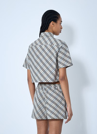 Taupe Cropped Check Cotton Shirt