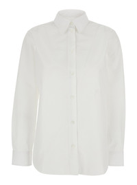 Burberry Women 'Ellora' White Shirt With Pointed Collar And Tone-On-Tone Embroidered Logo In Cotton