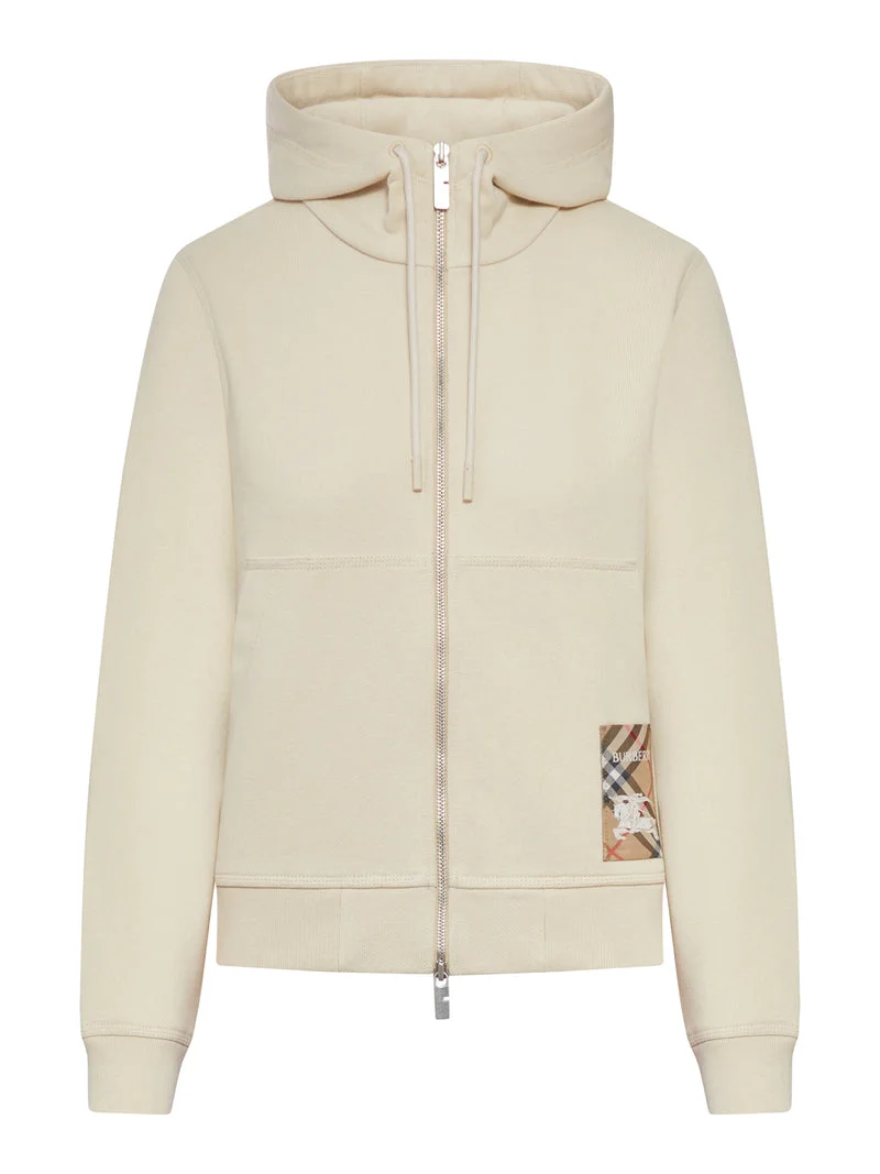 - Zip closure - Drawstring hood - Kangaroo pockets - Ribbed trim - Burberry Check patch on the pocket - Regular fit - 100% cotton - Color: Beige Made in Portugal Composition: Cotton 100% Cotton Color code: C1740 NUTMEG 8118582 SKU: 8118582C1740NUTMEG Our Products Are 100% Genuine. In All Cases We Stand By The Authenticity Of Every Product Sold On Our Site. All sales are final and we only accept returns for quality issue. Buyer is responsible for any import tax/duty if applicable.