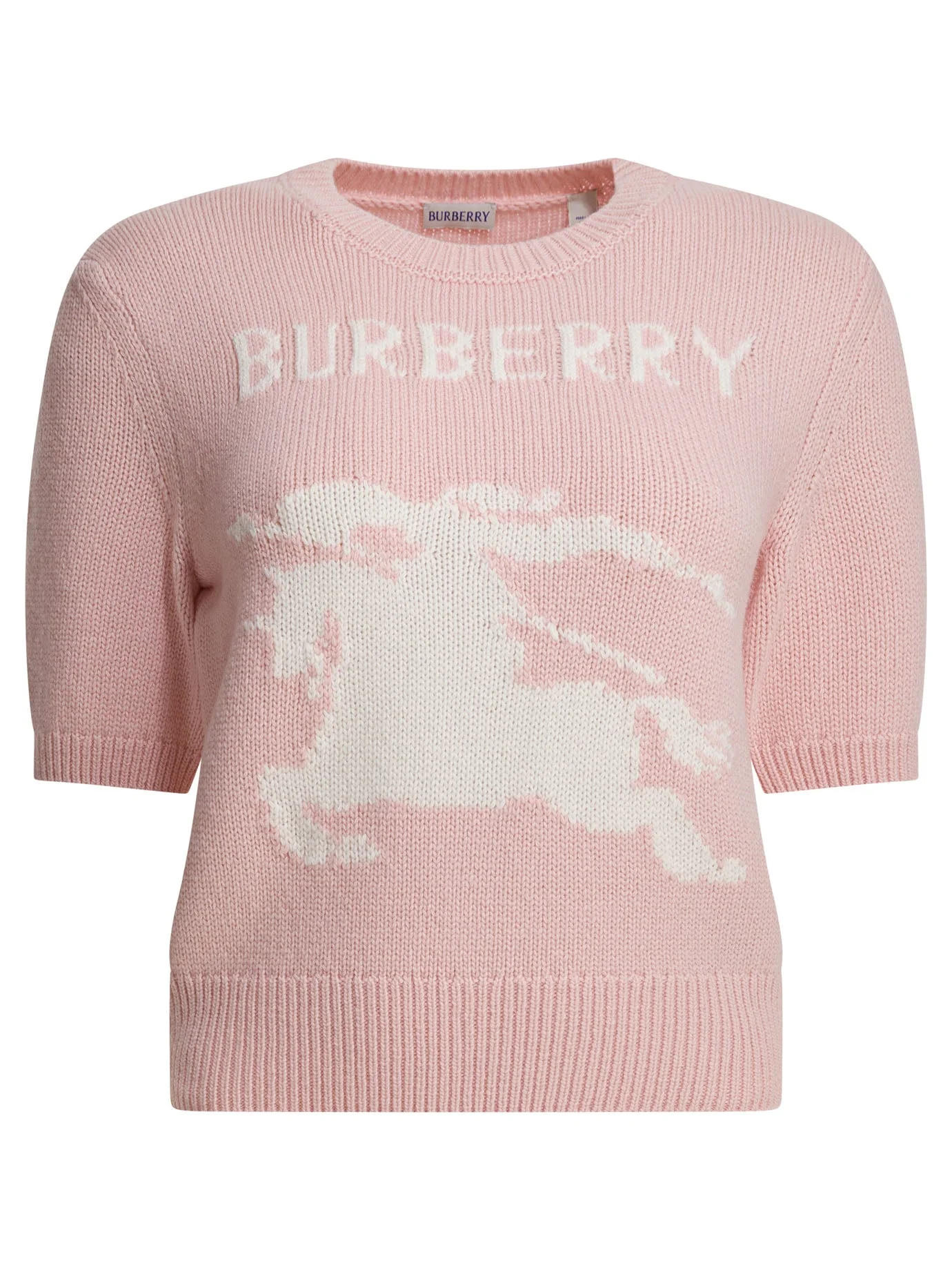 Burberry's "Skylar EKD" sweater, made from a soft wool and cashmere blend, features a knit construction with short sleeves. The silhouette is defined by a regular crew neck with ribbed trim. The Burberry logo and Equestrian Knight Design motif are integrated into the workmanship. The cut follows straight lines with regular fit, with no additional decorative seams. The construction focuses on natural materials with compact texture. || - Logo - Equestrian Knight Design motif - Short sleeves - Crew neck with ribbed trim - Wool and cashmere - Regular fit 70% wool 30% cashmere SKU: 8121956 Our Products Are 100% Genuine. In All Cases We Stand By The Authenticity Of Every Product Sold On Our Site. All sales are final and we only accept returns for quality issue. Buyer is responsible for any import tax/duty if applicable.