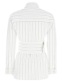 Belted pinstriped cotton-poplin shirt White