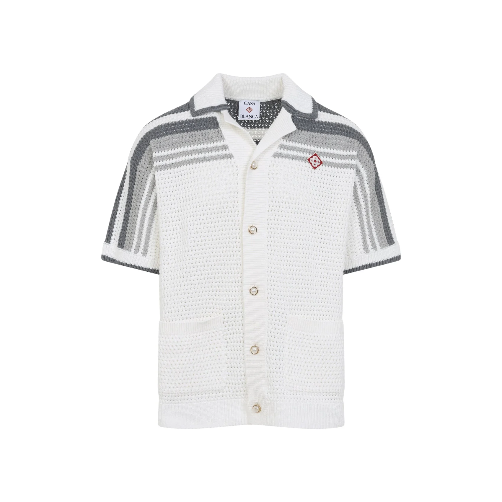 Casablanca Crocheted White and Grey Cotton Shirt. Crocheted white cotton shirt, it features grey-toned embroidery on the top, a pointed collar, front button fastening, logo patch on the chest, two patch pockets on the front, short sleeves, and a straight hem. Cotton | 100%COTTON Size Type: INT SKU: MSP26KW93301White Our Products Are 100% Genuine. In All Cases We Stand By The Authenticity Of Every Product Sold On Our Site. All sales are final and we only accept returns for quality issue. Buyer is responsible for any import tax/duty if applicable.